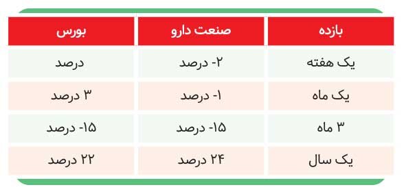 در ایران، این صنعت در سالهای اخیر با چالشها و فرصتهای متعددی روبهرو است. از نظر بازدهی، صنعت دارو در مقایسه با بازار کلی بورس ایران در بازههای زمانی مختلف عملکرد متفاوتی داشته است. این صنعت در بلندمدت از بازار بهتر عمل کرده اما در سال اخیر بازدهی صنعت بسیار با بازار نزدیک بوده و توانسته ۲۴ درصد بازدهی کسب کند.