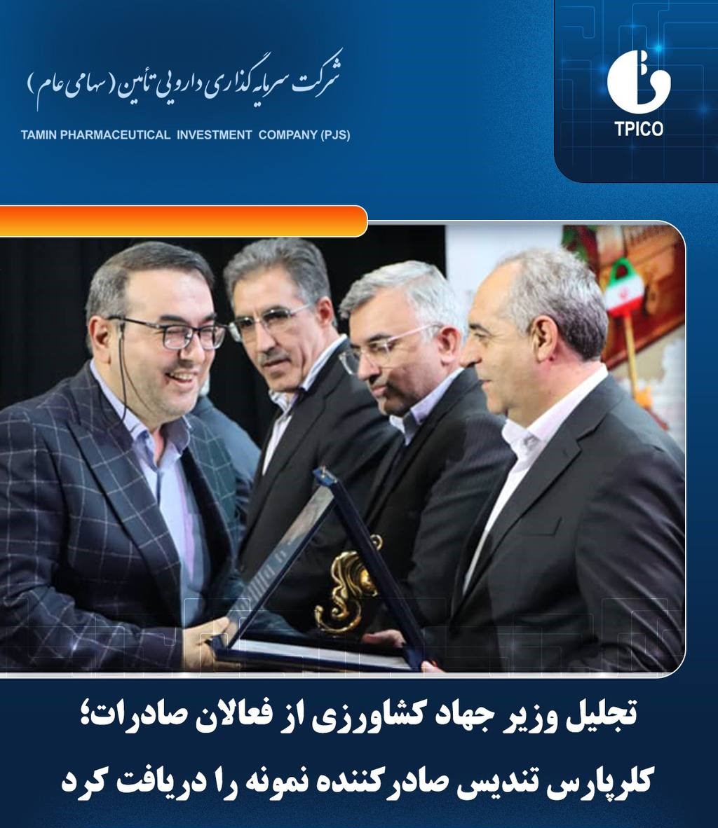 در بیست و نهمین همایش ملی توسعه صادرات غیرنفتی ایران که با حضور وزیر جهاد کشاورزی و جمعی از مسوولان عالیرتبه کشوری و استانی در تبریز برگزار شد، شرکت کارخانجات کلرپارس موفق به دریافت تندیس و لوح صادرکننده نمونه شد. این تندیس توسط مرتضی اعیانی مدیرعامل شرکت دریافت شد.