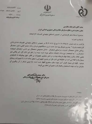 وی با انتقاد از برخی تبلیغات رسانه ملی گفت: حتی برخی از آگهیهایی که از صداوسیما پخش میشود مانند کلینیک دندان پزشکی "کاخ لبخند" فاقد مجوزند و ادعاهایی مانند اولین و بزرگترین مرکز تخصصی را مطرح میکنند که بههیچوجه مورد تائید سازمان غذا و دارو نیست. حتی در این زمینه سازمان غذا و دارو در نامهای صراحتا اعلام کرده است که این کلینیک فاقد مجوز است.