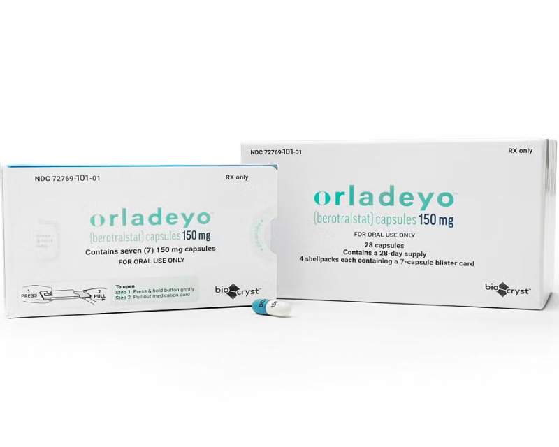 به گزارش فانا، داروی Orladeyo (berotralstat) در ۲۰۲۰ به صورت کپسول یکبار در روز برای آنژیوادم ارثی در افراد ۱۲ سال به بالا تائید شده بود.