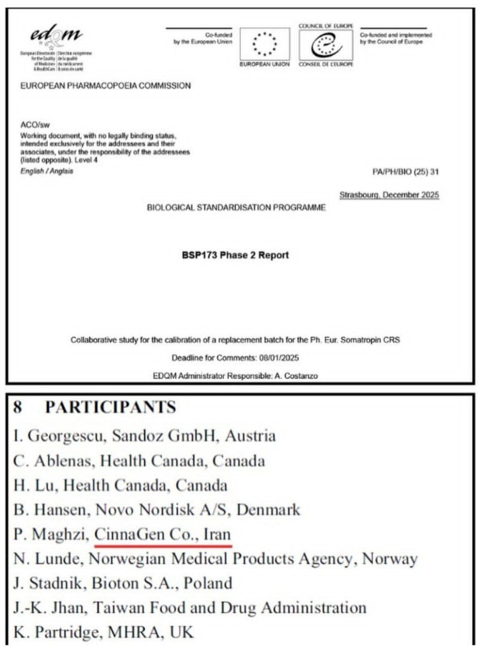 این همکاری‌ها با انجام آزمون‌های تخصصی برای تائید استاندارد مرجع جدید (CRS) داروی هورمون رشد آغاز شده است.
